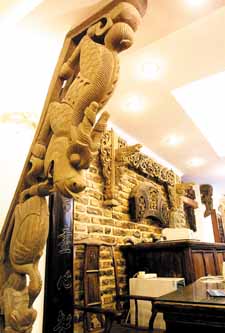 粤唯鲜位于天津小洋楼集中区域—五大道附近,这里不仅仅是家餐厅,它的另一个招牌是华蕴博物馆,冯骥才为它题词:“能吃的博物馆”,也算是中国唯一了。华蕴博物馆所陈列的展品囊括了西周至清朝各个历史时期最典型的青铜器、铜器、木雕、石器、老门窗、彩绘木人、烟具、屏风、座钟、桌椅、木箱、提盒、老铁、钟等100多种的3000余件文物最早的可追溯到公元二三千年前。华蕴博物馆的特色之处还有世界上第一的石头酒吧。粤唯鲜的石头酒吧开创了石文化第一,这里摆放的石头多是汉白玉的,囊括了北齐、北魏、宋元明清等朝代的300余块石头。而且石头酒吧所收藏的汉白玉石器无论是其数量还是质量在全国乃至全世界都是一流的。酒吧的格调是中西合璧,古朴、不失现代风格。