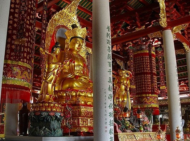 三中全会之后,宗教政策得到贯彻,该寺产权落习归还宗教团体——潮州市佛教协会管理使用。在市佛协的带领下,四众熟诚乡应,捐资修复成一座小殿堂,开展宗教动并对外开放。潮州市升格之后,该寺产权移交给湘桥区佛协会管理和使用。九三年五月林希炎、柯紫蓉居士陪同宏生大和尚来寺朝山礼圣,见松林峰气势宏伟,茂林沃野花果林木婆娑;寺靠山峰雄伟;雨边山势落脉蜿蜒环拱山门,状似龙象守寺;寺前横堤护基,湖泊职镜;远望笔架(山)、葫芦(山)、金山、韩江滨江、凤城璀璨,雄伟壮观,故知昔日潮郡名人留诗咏景之不虚,诗曰:“头枕松林峰,脚踏黄枝湖。版权所有山东聊城聊之旅国际旅行社有限公司,转载必究!左手挽笔架,右手托葫芦。”不愧为名胜石迹。于是发大原心扩建重兴松林古寺。遂请名工程师做总体规划设计、规划用地共六十多亩;总建筑面积为九千五百多平方。总体建筑布局大致为五部分,中轴线为山门、金刚殿、天五殿、圆通宝殿、大雄宝殿、藏经楼;东侧:东长廊、地藏殿、钟楼、客堂、斋堂、僧舍、佛教文化中心楼、五百罗汉堂;西侧:西长廊、伽蓝殿、鼓楼、僧舍、念佛堂、普同塔、敬老院;山门前配套:东、西双石塔、放生池、曲径、凉亭、桥、牌坊、寺道,广场配套等。