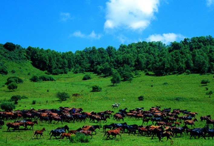 西周初年,秦人先祖非子就在汧渭之间为周王室饲牧养马,“马大蕃息”,功绩卓著,周孝王8年(前890)被封为食邑,建城于现在陇县牙科乡磨儿塬。公元前776年,秦襄公迁建汧邑,位于现在陇县东南乡郑家沟塬,公元前770年,襄公护送周王室东迁洛邑,有功于周平王,被正式封为诸候,汧邑成为秦国第一个都城持续到公元前762年,长达14年,秦人在陇山山地草原由畜牧业起步,完成了从游牧向农业民族的转变过程;也正是在千河平原建立了诸候国,走向了关中平原,进而统一了全国。因此,陇山山地和千河流域是秦文化的发祥地,也是中华民族统一的汉文化形成的发源地之一。 秦统一后,陇山千河之地虽成为一普通的州县,但仍为西北之门户,岩疆重地,系全秦之安危,被视为“咽喉呼吸之关,锁钥关键之固”的兵家必争之地。版权所有山东聊城聊之旅国际旅行社有限公司,转载必究!汉王朝初期,北疆游牧民族统一于匈奴军事帝国,占有很大军事优势,汉王朝被迫采取“和亲”之策,以勉其掠州夺郡。汉武帝时转为战略反攻,终于挫败匈奴,奠定了中国的疆域基业。汉匈之战是中国统一多民族国家形成的重要环节,而这一过程的实现与关山草原密切相连。汉王朝军事力量的强大,除得益于文景之治国力大增外,还凭借于作战军队完成了由步兵为主向骑兵为主的转变,大范围机动作战能力的形成。而当时的陇山地区,是汉王朝北扩前拥有的重要牧区,西域传入的良马佳驹在这里得以繁衍,满足了军事活动的需要。据说汉代时关山一带牧养的马匹达30多万匹。霍去病20岁第一次率万余精骑出击匈奴,就是过关山出陇西,沿祁连山直趋西北,长途奔袭,凯旋而归。盛唐之时,关山牧马业更为发达,朝廷设立了陇右牧马监,王候将相的私牧也多放养于此。中国历史的汉唐雄风之中必然也包括源于关山草原的汉唐朝骏马的雄姿。 《木兰辞》 中有“关山度若飞”一句,说的就是这里的关山。