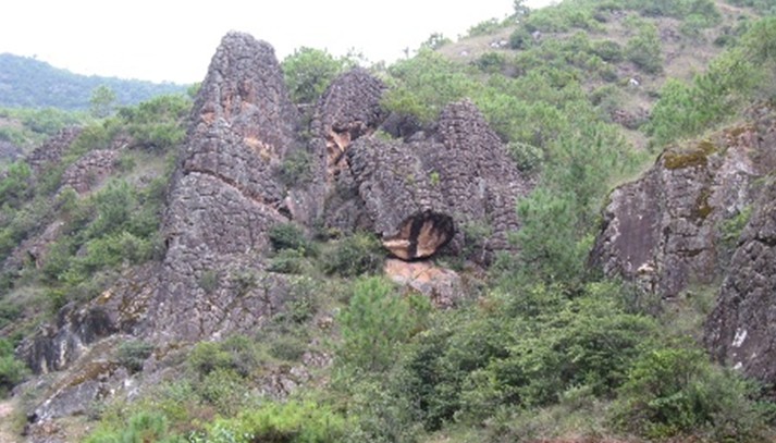 阿□白造像 石钟寺区第8窟,分上下2层,上层正中1窟,中雕仰莲座,座上原有雕刻已毁损,在此部位上雕一锥状物,中央凿一深槽,深槽两侧有一道道打凿的痕迹,似女性生殖器,在晚近时期已成为妇女为求子嗣而膜拜的对象,民间称“阿□白”。
