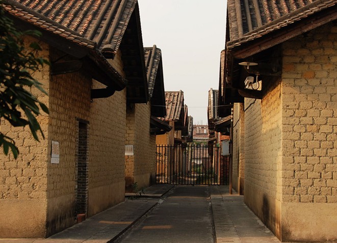 位于花都市新华镇大怖乡官禄村,是洪秀全成长、耕读和从事早期革命活动的地方。原故居于金田起义后被清军焚毁。1961年广州市文物考古队发掘出房屋墙基,参照客家民居形制重建。建筑为泥砖瓦木结构,一厅五房,六间相连,客家人称为“五龙过脊”;坐北向南,东西宽16.5米、南北深5.5米,版权所有山东聊城聊之旅国际旅行社有限公司,转载必究!每间房子约13平方米。西端第一间为洪秀全夫妇住房,室内陈设简陋,仅有仿客家样式的床、桌子和凳子。第二间房子正面挂洪秀全太祖洪英纶夫妇画像,画像有洪秀全的亲笔题诗。