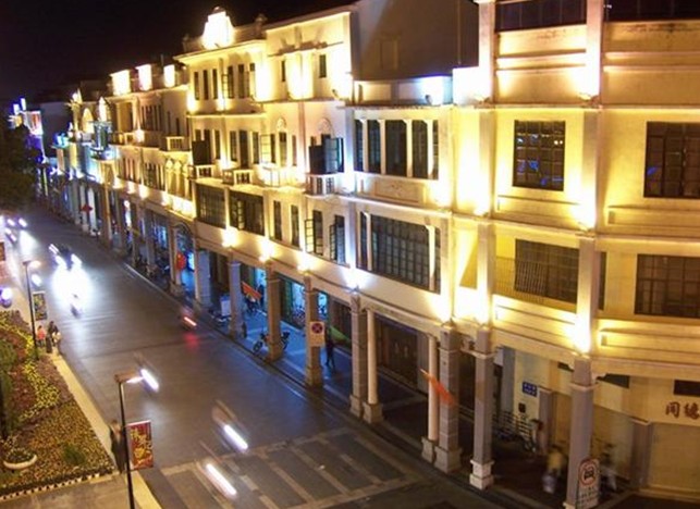 长堤风貌街的建筑大部分在20世纪二、三十年代建成。建筑风格中西结合,数百间骑楼各具特色,是江门的商业老区,鼎盛时期,商业、娱乐、物流等风生水起,高度繁荣,曾有“小广州”之称,也是目前广东省内乃至国内保存较完整且侨乡特色明显的历史文化街区。2001年,随着改造整治工程完工,版权所有山东聊城聊之旅国际旅行社有限公司,转载必究!长堤风貌街以崭新的面貌呈现在人们面前,成为江门城市建设的一大亮点和市区极具侨乡文化特色的街市