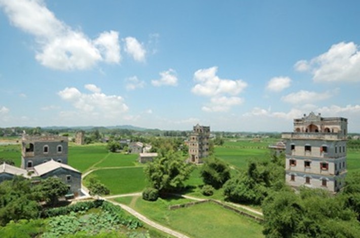 开平碉楼分布在广东省开平市境内,是中国乡土建筑的一个特殊类型,是一种集防卫、居住和中西建筑艺术于一体的多层塔楼式建筑。其特色是中西合璧,有古希腊、古罗马及伊斯兰等多种风格。