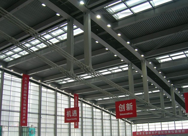 ◆展厅亮度正常照明、事故照明间隔分布,以配合自然采光天窗手动调节;照度为:300lx-400lx(勒克司lx)