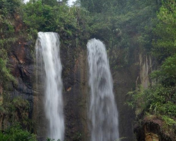 根据资料记载,凤南瀑布水盛之时,飞流直下,喷珠溅玉,极为壮观。但是也就是因为这样的大落差大流水量,吸引了水利工作者在这里修建了水电站,所以现在我们看到的凤南瀑布,其实已经是经过人工改造过的非天然瀑布,因为要利用落差发电,一道瀑布被水闸分成了三道,远远看去,仿佛九龙盆边上三条白龙,在周遭的绿意中显得格外醒目。