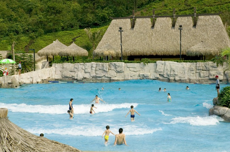 海浪池:造浪宽30米,浪高0.3-1.2米,为喜欢日光浴的客人提供了逼真的沙滩,并提供沙滩上的必需品如棕榈树下摆放有沙滩椅;
