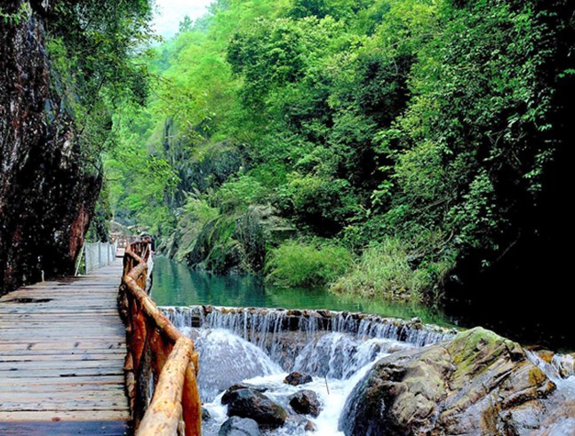 对于大多数来白水寨观光的游客来说,最吸引他们的莫过于是那道中国内地落差最大的瀑布了!登山观瀑,亲近山水,版权所有山东聊城聊之旅国际旅行社有限公司,转载必究!在炎热的夏天享受属于高山的清凉,更让人感觉无比快意。在白水寨登山,除了号称“天南第一梯”的登山步道,滨水而建的亲水栈道其实更得游客欢心。它贴着溪流,指向山谷深处,沿途都有绿荫遮蔽。走在上面时,清新的空气、和煦的山风与温暖的阳光伴随着满山的翠绿和潺潺的流水声而来,感觉总是那么舒服,所以人们走得特别慢,为的就是一边好好地欣赏周遭的美景,一边尽情呼吸高山流瀑释放出的美妙空气!