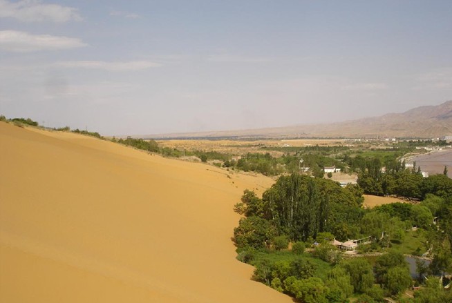 沙坡头的北面是浩瀚无际的腾格里大沙漠,而南面是一片郁郁葱葱的沙漠绿洲。骑着骆驼在沙漠上走走,领略一下大漠风情,别有一番味道。