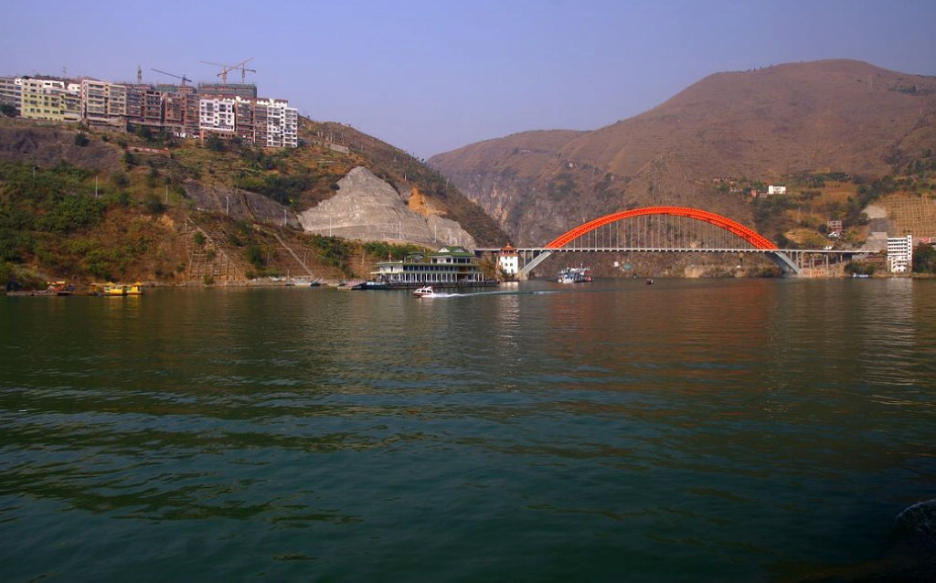 小三峡是针对长江的大三峡而言的,它位于重庆巫山县境内。长江在进入巫峡时,有一条名为大宁河的支流流入,形成一个比较宽敞的江面。巫山县城就处在大宁河流入长江的入口处,是一座搬迁后新建的小城。从下面望去,不大的城区依山傍江,错落有致。导游介绍说,新城是广东援建的,主要街道就命名为广州街。