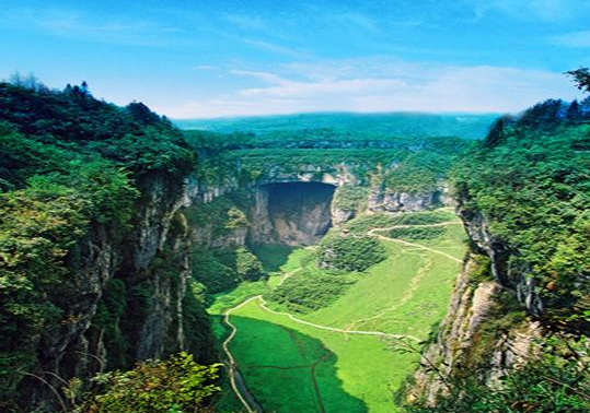 武隆天生三桥风景区位于重庆市武隆县引城东南20公里的白果乡与核桃乡交界处,是世界上最大的天生桥群。距“南国牧原”仙女山15公里,交通十分便利。大自然的鬼斧神工造就了这3座天生的石拱桥,使其具有雄、奇、险、秀、幽、绝等众多特点,虽历经千万年的风风雨雨,至今却依然如故。天生三桥风景区内,林木清秀,植被丰厚,苍翠欲滴,飞泉流瀑遍布其间,包容了山、水、泉、峡、峰、瀑等众多景色。版权所有聊城聊之旅旅行社有限公司,转载必究!灌木丛生,覆盖三桥,更显得三桥历经千年之沧桑。清晨时分,雾气弥漫,高大的三桥犹如连通天界神宫之间的御桥,更显缥缈、震撼,令人不禁暗自相问:神乎?奇乎?