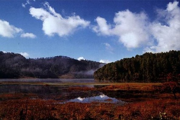 天地湖西岸五宝山以海拔3225.9米的气势赫然耸立。版权所有山东聊城聊之旅国际旅行社有限公司,转载必究!仁立山巅,东可望大理苍山,西可指碧罗雪山。尽收眼底的是远近之景不同,涌上心间的是美之感受各异。天池不仅以其独特的自然风光出名,而且还以环山众多的动、植物著称。80年代,天池地区被确定为省二级自然保护区,总面积为101553亩,森林覆盖率达80%,主要保护对象为云南松原始林,高山湖泊以及各种猴类等野生动物。
