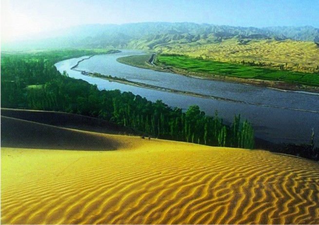 这里有中国最大的天然滑沙场,有总长800米、横跨黄河的“天下黄河第一索”--沙坡头黄河滑索,有黄河文化的代表一一古老水车,有中国第一条沙漠铁路,有黄河上最古老的运输工具——羊皮筏子;有沙漠中难得一见的海市蜃楼可以骑骆驼穿越腾格里沙漠,可以乘坐越野车沙海冲浪,咫尺之间可以领略大漠孤烟、长河落日的奇观。黄河南岸是一块三面环沙,一面靠山的“U”半岛,这里地形优越,景观奇特,民俗淳朴,资源丰富,可以在演绎中心观看具有异域风情的、民族特色的歌舞表演,可以住宿黄河塞上人家干农家活、吃农家饭、睡农家炕、享农家乐;滨河浴场可以体验母亲河的沐浴,秦代长城和陶窑在这里留下了千古不朽的遗址。