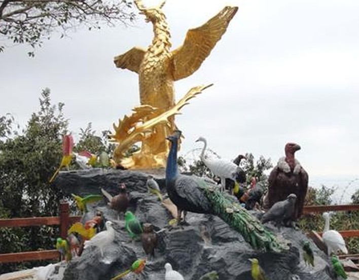 经佛法大师开光的惟妙惟肖金饰巨幅雕塑“百鸟朝凤”高约3米,百千珍禽涌拜凤凰,是三亚市地标性珍品。百鸟朝凤送吉祥,取瑞鸟之灵气,版权所有山东聊城聊之旅国际旅行社有限公司,转载必究!保国泰民安,送万家福乐。游人在此可以求得家人平安、幸福、健康长寿。