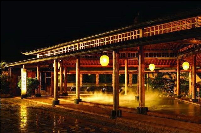 御温泉内按不同需要和功能分为灵芝汤、鲜人参汤、当归汤、薄荷汤、艾叶、三丫苦汤、芦荟汤等池子,客人还可享用各种特色温泉池、桑拿、蒸汽浴、健身房、香薰屋及饮品。明月松间,清泉石上,树影婆娑,氤氲香弥……每一个走进御温泉的人都仿佛走入一片久违的山水田园。御温泉设有天然温泉华兴池、花草温泉、木温泉、咖啡温泉、酒温泉、瀑布温泉、音波喷射温泉、石温泉,以及成人、儿童温泉游泳池和设备齐全豪华的健身中心等十余种不同类型的温泉浴服务。御温泉建有10多套独立室内温泉浴池的园林式贵宾休息房。还配有大型蒸气浴和桑拿浴室及40多间标准按摩、推拿室,供游客浴后接受保健按摩,增强泉浴的疗效。