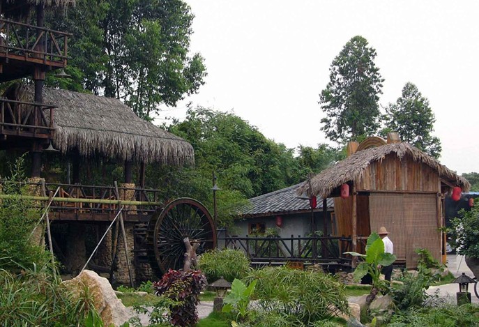 乡村茗阁,临轩品茗,健身心,振精神,其喜洋洋矣。乡村温泉,去劳顿,冶情操,欢而忘忧其乐融融。乡村酒家,乡野时蔬,脍炙人口。登高倚栏,全园风光似画,碧水涟漪,翠堤密树,风竹苍深,亭阁峥嵘。所谓,一草一木亦生命,一山一石皆文章,此为创园者之意旨。