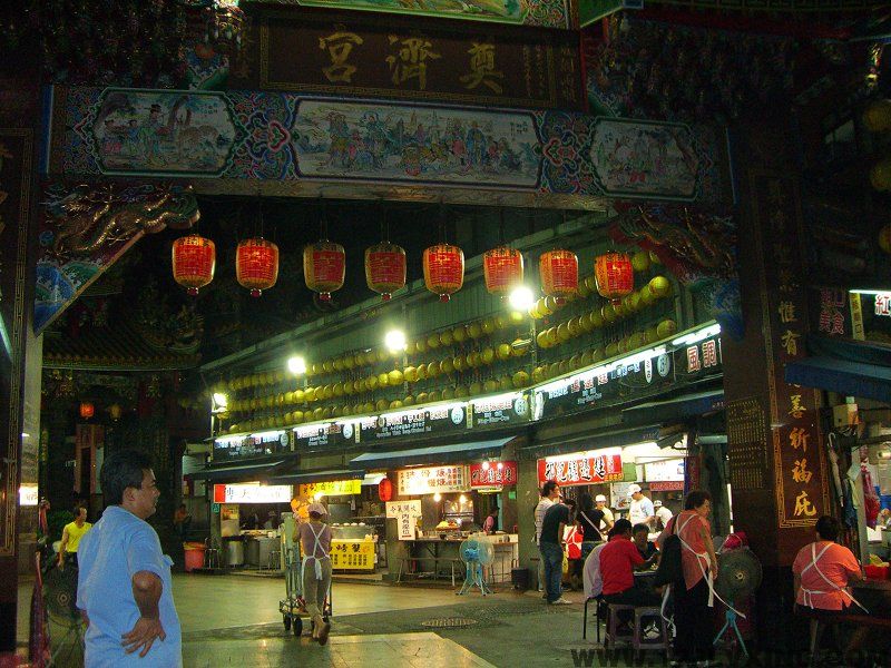 基隆庙口的小吃最早可溯源至日据时代,而今日『庙口』已成为众所周知的观光地点,基隆庙口因位于俗称『圣王庙』的『奠济宫』前而得名;奠济宫建于公元1873年,迄今已有100多年的历史,是名副其实的百年古刹;奠济宫供奉的是开漳圣王,是唐朝的陈元光将军,开漳圣王是河南人,在公元686年奉命平定闽粤有功,因此死后封为开漳圣王;当时由基隆地方士绅白番,有济堂连新永、自杨传等购买外木山十多顷田地为庙产,以木料建庙其上,但是后来由板桥望族林本源等捐献现在仁爱区王田里的土地再由地方士绅张金发及赖武等人捐款,并获得地方热烈响应,入庙后可见排列整齐的红色大石柱,上面刻有敬神对联,正殿主神前的花鸟石柱则是日治时期建的,因为日人崇尚花鸟之故,龙柱则是第二次世界大战所造,展现了中国寺庙的风格特色。