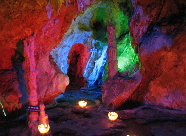 云浮蟠龙洞风景名胜区位于广东省云浮市区北部的狮子山中,是一个经历了1.7亿多年逐渐形成的次生溶洞。洞分3层,上为天堂通天洞,下为龙泉地下河,中为九龙长廊。蟠龙洞属喀斯特溶洞,洞内石花高悬,钟乳低垂,石笋石柱如林,石幔、石帐、石盾、石堤应有尽有,奇景叠出,洞体迂回曲折,形若蛟龙,故得名"蟠龙洞"。蟠龙洞属喀斯特溶岩,经历亿万年漫长岁月逐渐形成。洞内游程528米,分三层,上层天堂通天洞,下层龙泉地下河,中层九龙长廊,层层相连,曲折迷人。洞内钟乳千姿百态,石笋石柱如林。处处有景,景景皆奇。类人似物有“神龟朝圣”、“龙母浴池”“天书神笔”、“玉壁雄关”等58景,真是惟妙惟肖,栩栩如生,引人入胜。版权所有山东聊城聊之旅国际旅行社有限公司,转载必究!而最为奇特的是洞内岩壁上长出的簇簇石花,石花晶莹洁白,剔透玲珑,如银星闪烁熠熠生辉。