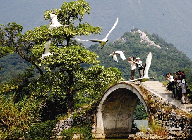 游人可乘坐仿古游船近距离观看保护区内的自然候鸟和湿地风光,也可以登上鹤岛,穿梭于木栈道之中,欣赏一生难得一见的“世界绝活”丹顶鹤编队飞翔。也可以通过鹤岛上设置的望远镜远距离观赏候鸟。同时,星湖湿地公园也是一个重要的科普教育基地。现规划在大揽岗通过对现有建筑进行改造,建立湿地宣教中心。湿地宣教中心设多媒体展示中心、宣教图片展览室、标本室和鱼类馆,版权所有山东聊城聊之旅国际旅行社有限公司,转载必究!配置陈列与展示柜、办公用具以及计算机、投影机、电视机、录像机等仪器设备,通过图片资料展览、实物展示和放映展示湿地优美环境和湿地保护知识的录像、电影、电视片等,对群众进行集中宣传教育。规划建筑面积600多平方米。星湖湿地公园是广东肇庆市生态系统的重要组成部分,是肇庆市天然的“城市之肾”;是肇庆市作为山水名城、国家历史文化名城、全国优秀旅游城市的重要载体;是肇庆市“千里旅游走廊”上的明珠;是我国南方湿地珍稀水禽人工繁殖的国家级基地;是广东省湿地生态科普教育基地。所以,星湖湿地公园是游人悠闲、度假、观光以及增长见闻的好去处,是宣传湿地保护的一个重要载体。