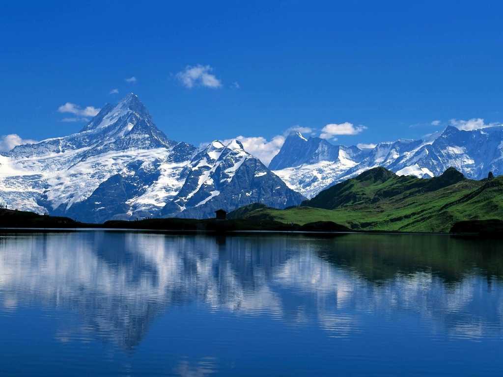 天池东南面就是雄伟的博格达主峰(蒙古语“博格达”,意为灵山、圣山)海拔达5445米。主峰左右又有两峰相连。抬头远眺,三峰并起,突兀插云,状如笔架。峰顶的冰川积雪,闪烁着皑皑银光,与天池澄碧的湖水相映成趣,构成了高山平湖绰约多姿的自然景观。
