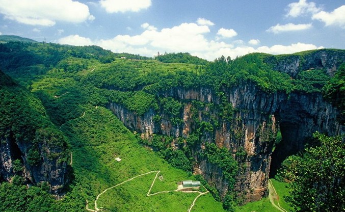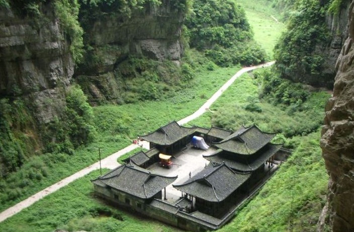 天坑三桥位于重庆市的武隆县城东南20公里处,是重庆5A景点,武隆至仙女山高速水泥标美路旁,距南国草原仙女山约15公里,距天下第一洞芙蓉洞仅30公里,是全国罕见的地质奇观生态型旅游区。景区内游览路线从崖壁到谷底共5公里,以天龙桥、青龙桥、黑龙桥天生三座规模庞大,气热磅礴的石拱桥称奇于世,三桥平均高200米以上,桥面宽约100米,在距离仅1.2公里的范围内就有如此庞大的三座天生桥实属国内罕见。
