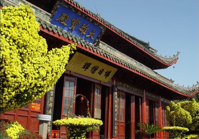 开封大相国寺于战火。唐景于二年(711年)重建。次年,唐睿宗为纪念他以相王身份入继皇位,乘改年号为延和元年之际,赐以今名,并御书“大相国寺”匾额。明末毁于黄河水淹,清乾隆三十一年(1766年)再重建。清重建的相国寺规模远逊于唐宋,其格局基本保存至今,即在一条中轴线上,由南至北,依次建有碑楼、版权所有聊城聊之旅国际旅行社有限公司,转载必究!二殿(天王殿)、正殿(大雄宝殿)、八宝琉璃殿、藏经殿。寺前院东侧还建有钟楼。