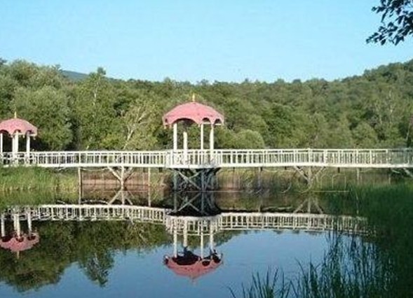 临近回龙湾,只见具有古典建筑风格,版权所有山东聊城聊之旅国际旅行社有限公司,转载必究!上书“回龙湾山庄”几个大字的门楼赫赫然映入眼帘。沿石甬路来到渡口-----“汤旺第一渡”,是进入回龙湾山庄的惟一渡口。位于山庄牌楼东500米处,在河两岸各有一座造型别致的悬索墩台,上有振翅飞的大型雕塑天鹅,将100余米钢缆衔于口内,东拉西扯,荡悠悠横于碧波之上。木制悬浮码头,随水势起落调整高低。铁壳双舟并联,每次可载60人左右,双舟在河水冲击下,滑轮滚动,两岸摆渡,既安全又充满情趣,真可谓舟在水中游,人在画中走。渡过百余米宽的汤旺河,弃舟登岸,映入眼帘的是刻有黑龙江省副省长、原伊春市市委书记王东华同志的题词“青山无限美,碧水寄真情”的石牌。再往前走就来到了回龙湾正门,正门上书“湖山胜境”,言外之意,跨入此门才算真正来到回龙湾山庄。沿着由水泥预制板铺成的小路往前走,展现在我们面前的是一尊造型独特、妙趣横生的“黑龙腾天”雕塑。黑龙眼望长空,尾巴翘立,欲腾飞离去,却又显出无限的眷恋之情,意味着不愿离开这美丽的地方。临清别墅:属回龙湾风标志性建筑,临河而建,外观为典型的欧式风格。哥特式的红色尖顶及拜占庭式的主体框架,配以乳白色的欧式风格。哥特式的红色尖顶及拜占庭式的主体框架,配以乳白色的白色的墙壁、硕大的蓝色落地窗,显示出浪漫的一国情调,其每层风格各异。一楼为会客室,宽敞明亮,一幅巨大的太公垂钓木雕附于厅壁,角落有日式内室称为“和寮”;二楼的“汉阁”正墙上悬挂一幅精心裱褙的字轴,上面完整地记叙了回龙湾开建设历史;三楼为“猎舍”,彷旧时猎舍居室风格装修,古朴典雅,耐人寻味。蒙古村落:位于回龙湾南于东皋台隔湾相望,有五座敖包组成。错落有致地排列于萋萋芳草中。一架勒车闲置在包前,几只散养的牛羊在没膝深的野草丛里悠然吃草,袅袅炊烟从敖包顶端升起.不时有身着鲜艳民族服装的姑娘手托着香气扑鼻的菜肴出入包中,俨然成吉思汗的子孙们活生生的场景.此时那首有名的"敕勒川,阴山下,天似穹庐,笼盖四野,天苍苍,野茫茫,风吹草低见牛羊"的 《敕勒歌》便会自然涌上脑海.敖包内装饰极具民族风格,是游人就餐之地.熏羊腿、烧牛宝、手把肉、烤全羊等佳肴,其味美纯正,风味十足,定会使你大饱口福.