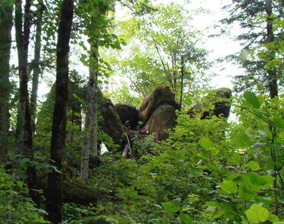 位于距市区7公里处。在一片密林中,有一簇平地拔地而起,以一块块花岗岩巨石砌成的石峰,高大雄伟,其形似柱,称谓石林。石林由六座石峰组成,南二北四。北面四座一字梯形排列,一高近丈,二高近二丈,三高平二丈,四高一丈半。二峰端长有苍松一株,似示最高。各峰成形惟妙,二三座石峰间相距极狭,仅尺许,缝如刀切,称“一线天”。在第四座石峰南5米处,还有两座石峰,相距不足1米,微低。远望,形如雄师卧地,前身支起而后身匍匐,似忠诚的护林卫士。第二丛树林,在第一丛以东偏南,相距约百米。由三座石峰构成,北二南一。北西两座甚是匹配,高九仞余,其中一座有三个峰端,有护林人“家业兴旺”之寓。沿三峰石南侧攀缘而上,至高6米处,钻过两块大石堆成的石门,便到了石峰东侧的平台,台成弧状,可纳十余人。台下是陡峭绝壁,其险令人目眩。台之对面,有一块呈圆鼓状、低于平台1米之大石,可容四人并坐,版权所有山东聊城聊之旅国际旅行社有限公司,转载必究!其底部与三峰石相连,有狭道与平台相通。登石眺望,可观得西南方向约20米处的丈余高之石峰,似一擎天巨柱……石林,仿佛小兴安岭建设者之雄资,在广袤密林中,手捧奇花异草,伴着山间小溪流水淙淙,迎候着远方的客人。