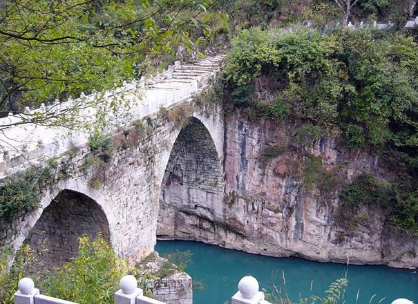 其中心景点为三江汇合处,三水斗奇,景致颇佳。溯三江而上,南连鱼梁江古渡口响琴峡,北望沙河之滨的道教圣地福泉山,西走诸梁江畔仙人洞。在三江汇合处,绝壁高峻,雄浑磅礴,江心兀立巨石一块,高约数十米,称“将军过河”,又有张三丰赶羊遗下的“金鞭石”之说。距沙河水约50米处,有一道瀑布,其下横生一石,称“金龟戏瀑”。 洒金谷的景物都有一个个美丽的传说,如“牛王投井”、“黑熊抱美女”、“豆腐桥”、“草鞋井”等等。古城垣、古桥、古驿道、古摩崖石刻,让游客置身一个远离现代喧嚣都市的净土。“豆腐桥”更以其精湛的造桥工艺载入了中国桥梁史。版权所有山东聊城聊之旅国际旅行社有限公司,转载必究!在桥头还保存着历代骚人墨客留下的咏桥诗篇。