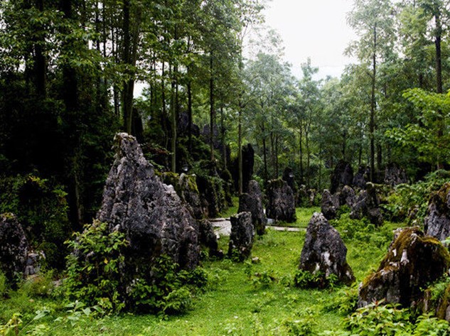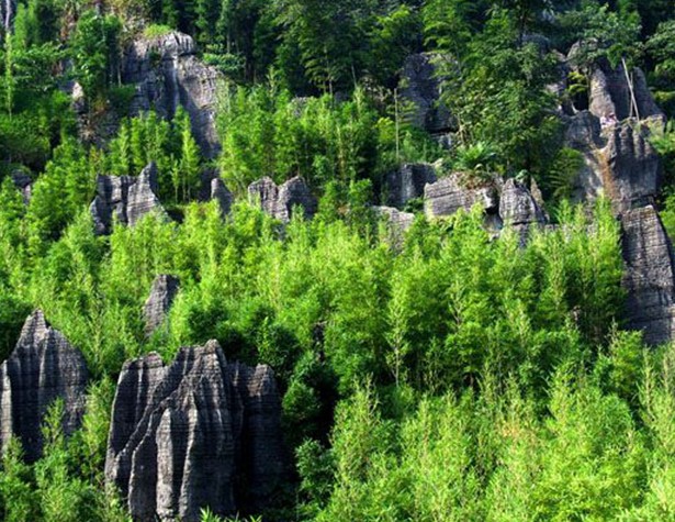 绿色石林地处贵州省贵阳市修文县,占地1000多亩。景区内众多奇峰怪石拔地而起,似剑如戟,破土直刺苍穹。石峰最高达30余米,又有地峡石罅幽深曲折。因绿树古藤、蟠枝虬根常年攀附石峰,使石林平添了几许柔情,获得了“绿色”石林的美誉。又因它造型迥异的石形而赢得了“拟态动物园”的美名。