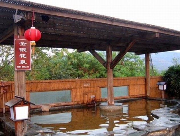 明皇御温泉位于贵州省开阳县双流镇白马洞热水村,距贵阳58公里,距贵遵高等级公路久长收费站10公里。占地面积1.83公顷,丛林环抱,依山傍水。明皇御温泉酒店为园林式设计,一色的古典中式建筑,带着浓郁的盛唐遗风,传承着皇家园林的古朴与厚重,是以吃、住、娱乐为一体的休闲度假温泉准四星酒店。酒店内两大浴区分设男、女宾部,一号浴区以“六沸汤池”、“浴疗包房”、“露天麒麟池”为特色,二号浴区设室内32℃恒温泳池和42℃半园池及休息厅。园中一大池,名为“贵妃池”,四周饰以轻纱薄幔,随风拂动,似有若无。园内的茶部陈设着各类奇石,40余块贵州龙化石尤为引人注目。漫步在古银杏树下、大小700株盆景旁,欣赏着400余幅来自杭州书画院名家的精品书画,思绪悠然。 御园内设有礼、茶、宾、疗、浴、膳六部,还设有大小会议室四间及礼仪服务、卡拉OK厅、露天网球场、羽毛球场。明皇御温泉井底温度45℃,水中含有对人体有益的锶、锂、锌、硒等微量元素,PH值7.64,水质属于软性水。版权所有山东聊城聊之旅国际旅行社有限公司,转载必究!水质清纯,可饮可浴。