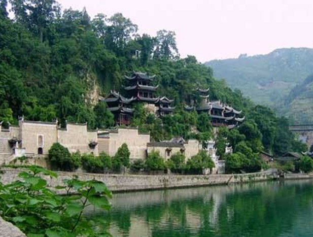 青龙洞古建筑群坐落在中国历史文化名城——镇远城东的中和山上。这里山势挺拔,峭壁悬崖。巨岩、洞穴和为一体。道、儒、佛三种宗教的寺庙群生就山腰。它背靠青山,面临绿水,贴壁临空,五步一楼,十步一阁,翘翼飞檐、雕梁画栋。这些古建筑依山因地,分别采用了“吊”、“借”、“附”、“嵌”、“筑”等多种工艺,硬是在一段悬崖上筑出中元洞、紫阳洞、青龙洞、万寿宫等一片阁楼洞天。它气势雄伟、构思大胆、布局精巧。于1988年被列为全国重点文物保护单位。青龙洞建于明代中叶,至今已有近500年的历史,曾几度毁于兵、火,几度修复,古建筑群经历代修建始成现代规模,位于城东中河山,占地21000平方米,有青龙洞、紫禅书院、中禅院、万寿宫、祝圣桥和香炉岩6部分共36座单体建筑组成,集儒、道、佛、会馆、桥梁及绎道建筑文化于一身。版权所有山东聊城聊之旅国际旅行社有限公司,转载必究!整群建筑靠山临江,依崖傍洞贴壁凌空、勾心斗角,错落有致。那飞岩翘角、贴壁凌空、红墙青瓦的殿阁楼台,气势宏伟。造型独特的建筑物与悬崖、古木、藤萝、岩畔、溶洞天然合成,融为一体,真是巧夺天工。既有临江远眺的吊脚楼,也有恬静幽邃的寺院禅台,有朗朗书声的学子院,更有锣鼓喧天的戏台,集天下山水楼阁荟萃为一方。整个建筑群重重叠叠参差不齐,纵横有致,沿庭院小径漫步,登斯楼而极目,如临海市蜃楼,蓬莱仙岛。为江南汉地建筑与西南少数民族山地建筑文化相结合的绝妙典范。有“西南悬空寺”之称,是贵州省规模最大的古建筑群。1988年经国务院批准被列为国家级重点文物保护单位。史载,距今600多年的明洪武年间,此地便已形成与现存建筑群相当的规模,“明郡守黄希英建,工部郎中赵之绪购藏经,构层楼以贮之”。清嘉靖年间这里不仅增加了大量寺庙,而且有了宫室和书院建筑,后多有改扩建。雍乾时又有了万寿宫等商业性会馆建筑及戏楼。光绪四年,又增建了祝圣桥上的状元楼(亦称魁星楼)。1956—1963年间,省州政府拨出专款,组织专人对青龙洞建筑群两度较大维修,后又对中元洞一组修复。1983年起,省政府再次拨巨款对青龙洞、紫阳洞、万寿宫、香炉岩等各组古建筑全面抢救和修复,青龙洞古建筑群得以恢复原貌。此建筑名胜有如群星 灿烂,通常以青龙洞概言之,成了历代游人流连忘返之地,文人骚客咏叹之物。清人陈夔龙诗云: