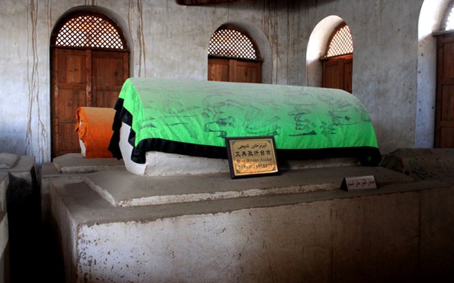 相传唐代贞观年间,穆罕默德派盖斯、吾外斯、万嘎斯三人来中国传播伊斯兰教,他们由水路而来,万嘎斯病逝广州,吾外斯和盖斯到达长安并受到唐太宗的欢迎。后来二人回国复命,西行路上吾外斯病逝于嘉峪关外(玉门镇)某地,后人为纪念他,叫此地为回回堡。盖斯于唐贞观九年(635年)死在哈密星星峡。版权所有山东聊城聊之旅国际旅行社有限公司,转载必究!当时星星峡边卡大队修筑营房拆毁。1945年3月由哈密伊斯兰教徒蔡建国、束毅初等人发起,由蔡建国、马俊杰负责从星星峡将盖斯遗骨迁入墓地并修建拱拜。