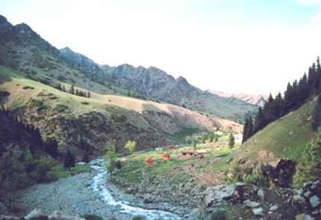 从五星牧场出发,约3公里至三岔口。版权所有山东聊城聊之旅国际旅行社有限公司,转载必究!三岔口东侧山谷喀尔勒克艾肯通往天山深处的夏牧场,酉侧是石窑子艾肯。沿石窑子艾肯北略偏西行,过黄羊沟,一路逆流而行至上石窑子扎营。