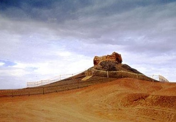属唐代护路烽燧,位于火焰山北麓一条干涸河道两侧,七泉湖火车站正南11公里,有小路通遗址旁。七泉湖萨依烽燧为古代穿越火焰山通道上的重要遗址,版权所有山东聊城聊之旅国际旅行社有限公司,转载必究!现外表呈梯形,分上下两层,每层又分左右两室,在台阶可登上层瞭望周围景观。