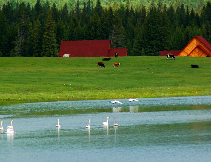 在新疆巴音布鲁克草原中心地带的巴音乌鲁乡以北 2公里处,有一条东西长30公里、南北宽10公里的高山湖泊,海拔2500~3000米,湖水潆回如带、清澈见底,水中生长着大量水生植物,四周群山环抱,绿草如茵,高山雪岭倒映湖中,形成神奇迷离的自然景观。每逢春末夏初,冰雪消融,大地复苏,旅居在印度、缅甸、巴基斯坦,甚至远到黑海、红海和地中海沿岸诸国的天鹅和雁鸥,不远万里,成群结队地飞到这里筑巢、换羽、求偶、生儿育女、栖息繁衍。这就是我国著名的巴音布鲁克天鹅湖自然保护区。天鹅湖鸟类资源十分丰富,水禽种类多、数量大。据考察这里有大天鹅、小天鹅、疣鼻天鹅一万余只;还有灰雁、斑头雁、白头鹞、燕鸥、白鹭等 100多种水鸟。其中灰鹤、黑鹤、羽鹤、大白鹭、金雕、秃鹫、胡兀鹫近10种珍稀鸟类,属国家一、二级保护动物。秋末时节,天鹅们带着各自“小宝贝”,时而欢腾在热闹的湖水中,时而击水而起,版权所有山东聊城聊之旅国际旅行社有限公司,转载必究!腾飞高空锻炼着飞越千山万水的本领。阳光下天鹅、湖水、山峰和云影构成一幅“片水无痕浸碧天,山容水态自成图”的画卷。巴音布鲁克能够成为天鹅的故乡,不仅得益于这里独特的地理环境和独特的气候条件,而且得益于当地蒙古族牧民把天鹅视为贞洁之鸟、美丽的天使、吉祥的象征加以非常的爱护。保护站在天鹅湖畔的高地建有一座瞭望台,可供旅游者观察天鹅的生活动态。