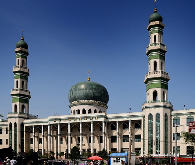库尔勒清真大寺位于库尔勒市中心"老城"地方,1987年重建,规模宏伟,整洁宽敞,装饰华丽,建筑风格颇新颖。殿堂、院内可同时容纳7千侨汇人作礼拜。迎街门楼高25米,分7层,每层有房间若干,为阿訇、毛拉司事休憩之处。殿堂内设冷风机,顶棚高悬吊灯、吊扇。四壁绘有维吾尔风格的图案,版权所有山东聊城聊之旅国际旅行社有限公司,转载必究!并书写了许多《古兰经》文。
