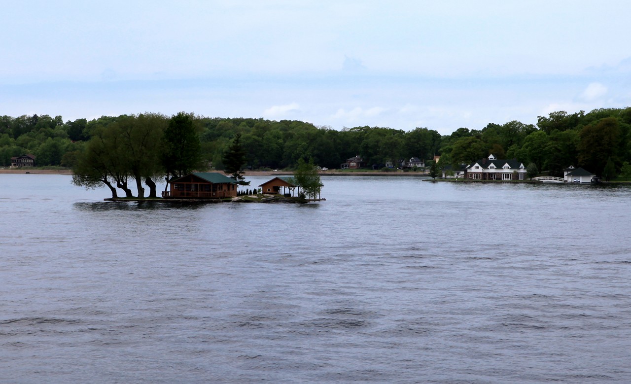 加拿大的千岛湖位于渥太华西南200多公里的金斯顿附近。金斯顿由于地处五大湖的连接处,所以也被称之为“水城”,在很久以前曾是知名的水运要塞。而千岛湖的千岛则是指圣劳伦斯河与安大略湖相连接的河段,散布着1800多个大小不一的岛屿。最小的只是一块礁石,大的可以达到数平方英里。在千岛湖里对岛的定义很有意思,据说只要可以有2棵树生长的露出水面的土地,就可以被称之为岛。