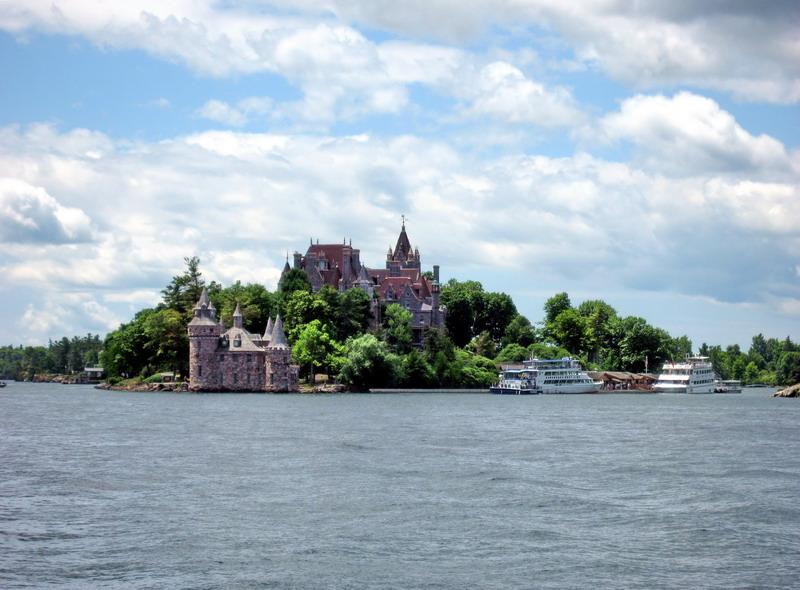 远处有一个心岛,1900年乔治•博尔特投资2500万美元,兴建罗宾兰德古堡献给他的妻子露易斯,不幸的是1904年他的妻子逝世了。此建筑物又叫博尔特古堡。他伤心欲绝,再也没有踏上岛上一步,而将它捐给了美国政府。