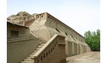 这里曾是新疆哈密历代回王行宫的所在地,但是今天行宫已经不复存在了——民国20年,也就是1931年,行宫在哈密战乱中被拆毁。 在行宫存在的盛期,那时它是一座巨大的花园,花园的背后是有着深红色岩石的山峰。老回王喜欢到处旅行和收集各种各样的植物,于是花园中种植着许多稀有的花木。这座花园有9重围墙,并且每道围墙之间的景色各不相同,人们从形状各异的围墙门洞之间穿行,如同一座迷宫。