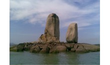 半洋石帆又称石牌洋,在福建平潭岛西北看澳村西侧500多米的海面,远远望去有一个圆盘状的大礁石,托着一高一低的两块碑形海蚀柱。整个礁石象一艘大船两块巨石象两面鼓起的双帆,似乎正在乘风破浪前进。这是平潭最著名的自然景观——石牌洋。又称为“半洋石帆”和“双帆石”。