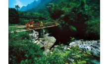 神农溪,发源于神农架主峰,流经湖北巴东县境内,由北向南穿行于深山峡谷之中,至巫峡口东汇入长江。神农溪是一条典型的峡谷溪流,两岸山峰紧束,绝壁峭耸,溪水在刀削般的峡壁间冲撞,水道曲折,湍急的溪流中有险滩、长滩、弯滩、浅滩六十余处。水道虽狭急却清浅,漂流极富刺激而又安全。
