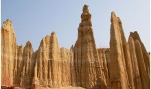 虎跳滩土林位于元谋县城西北32公里的物茂乡虎溪行政村,又称物茂土林,芝麻土林,总面积2.3平方公里。虎跳滩土林形状以城堡状、屏风状、帘状为主,高度一般10?15米,最高27米。