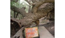 阿克苏向北,过温宿县城后,再向西北行60公里,穿越一大片戈壁滩,一个岗峦起伏的小绿洲便展现面前。这个小绿洲,不是处在地势低洼处,而是位于坡度平缓的岗阜上,海拔为1700米左右,面积仅0.4平方公里,但却是郁郁葱葱,浓荫覆盖,流水潺潺,蜂飞蝶舞,堪称人间仙景。当地称它为“怪树园”。被称之为“圣水泉”的一汪清泉在绿洲顶部,涓涓细流,滋润着这块绿洲。