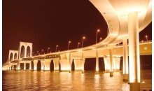 友谊大桥澳门“友谊大桥”,工程原称新澳氹大桥,1994年初建成通车。位于旧大桥(嘉乐庇总督大桥)以东,连接澳门半岛新口岸水塘北角(外港码头处)与氹仔北安码头。桥宽15米,设两条双线车道,中设分隔线,车道两旁设1.5米宽的行人道。